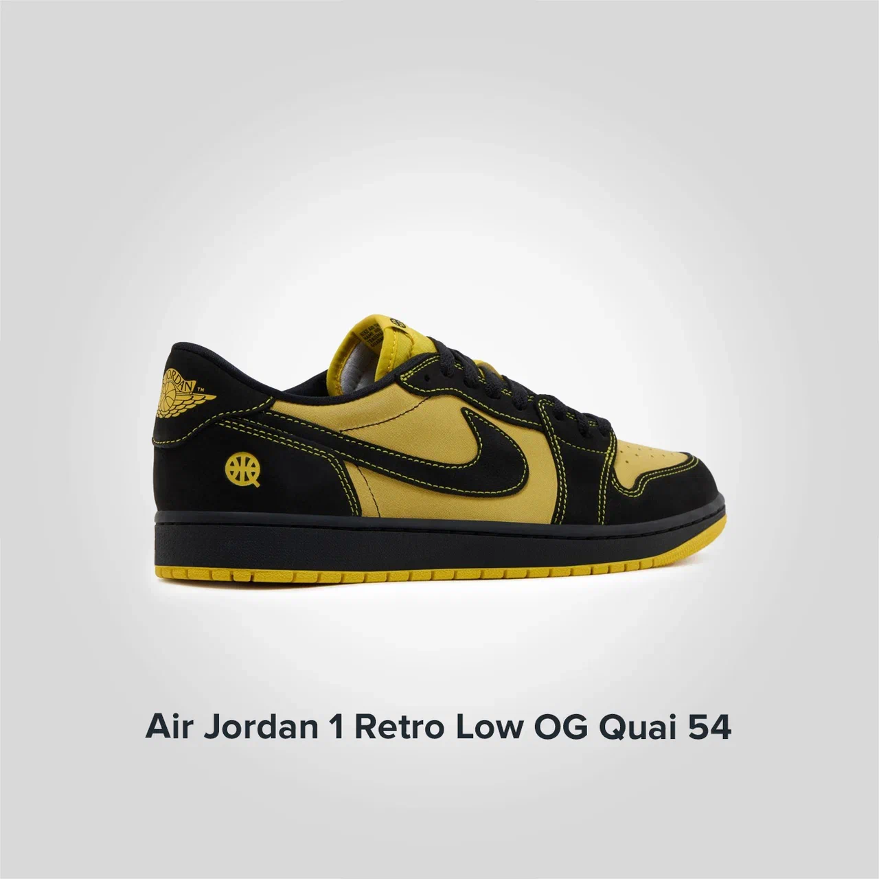 Новые кроссовки Jordan 1 Retro Low OG Quai 54 — это стильное воплощение парижского стритбольного турнира. Их дизайн основан на сочетании черной кожи, которая составляет основу верха, и ярких цветовых акцентах. Жёлтый цвет выделяет область носка и пятки, создавая контраст с черным. Красный цвет использован на логотипе Swoosh и на задней части обуви, где расположен логотип Wings. Фирменный знак Quai 54, выдавленный на пятке, подтверждает тематическую принадлежность кроссовок. Белая промежуточная подошва с видимой амортизирующей системой Air-sole обеспечивает комфорт, а красная резиновая подошва завершает спортивный образ.
