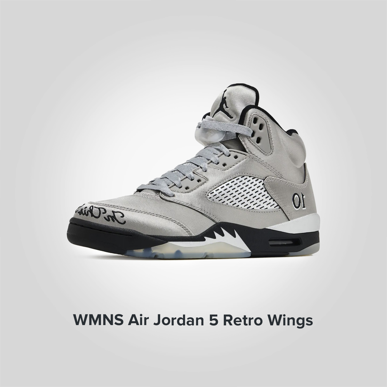 Юбилей стипендиальной программы Jordan Brand нашел свое отражение в уникальном дизайне кроссовок Wmns Jordan 5 Retro Wings. Верх кроссовок, выполненный из роскошного серебристого атласа, переливается на свету, подобно крыльям, готовым к взлету. Серые литые люверсы, элегантно контрастирующие с блестящей поверхностью, придают модели строгий и в то же время изысканный вид. Классическая сетка по бокам обеспечивает необходимую вентиляцию, обеспечивая комфорт даже при интенсивной активности. Надпись «In This Family No One Flies Alone» («В этой семье никто не летает в одиночку»), украшающая носок каждой пары, ярко выражает философию стипендиальной программы Jordan Brand: поддержка и взаимопомощь являются ключом к достижению целей.