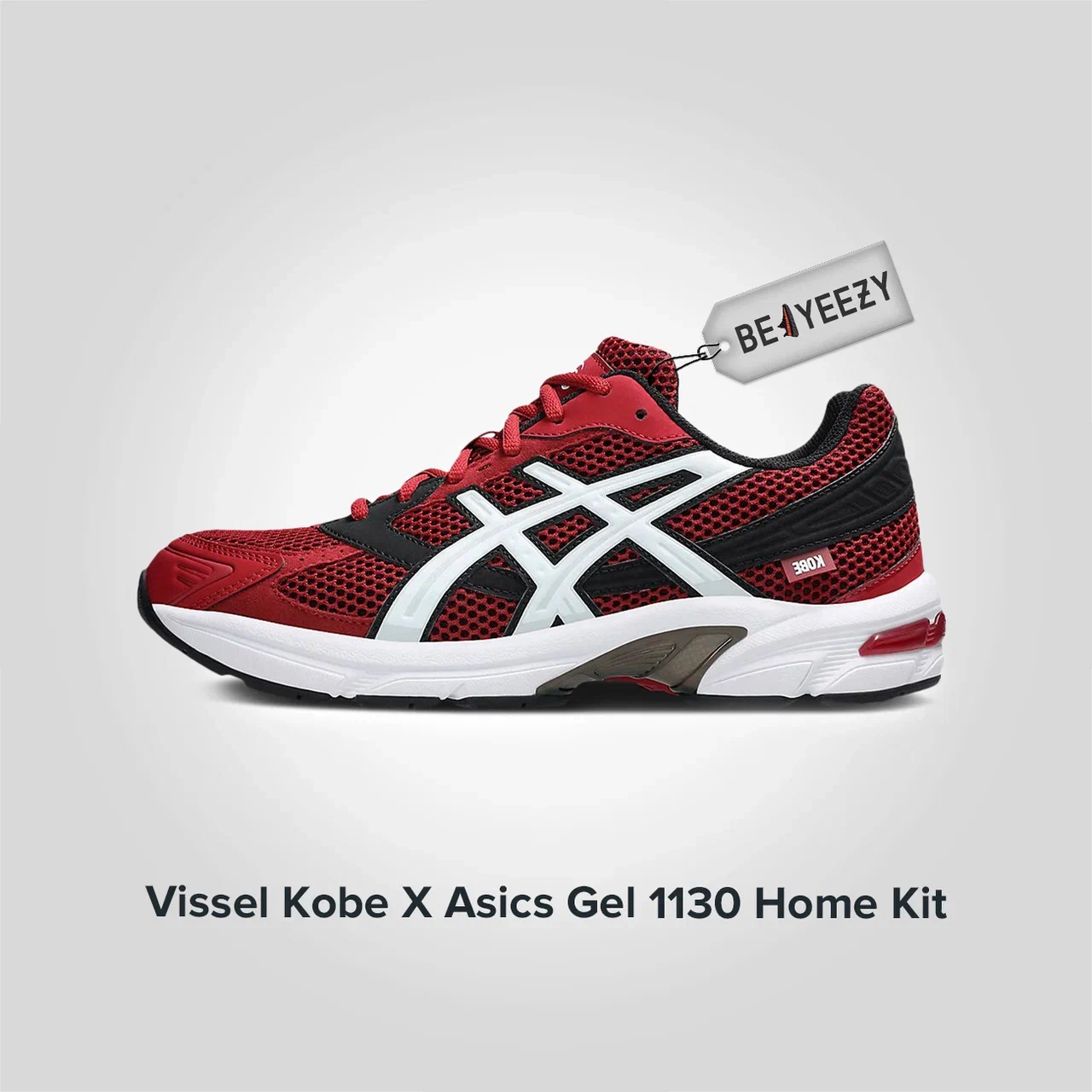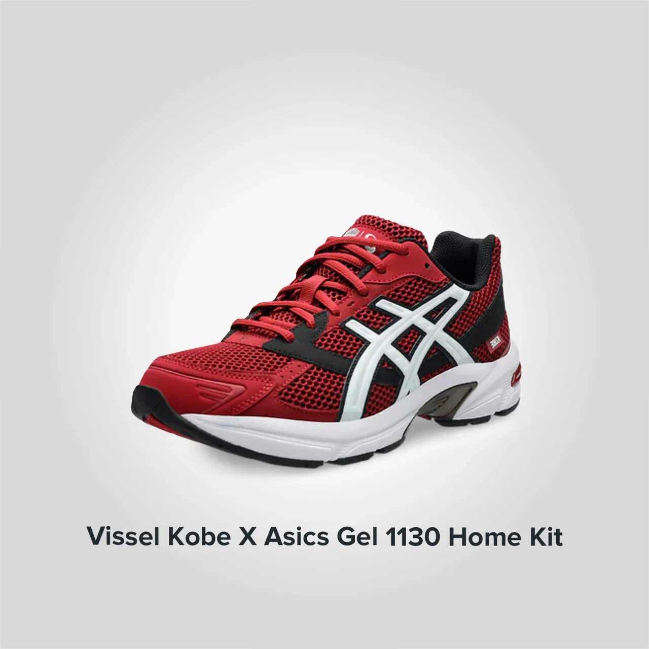 Пара Vissel Kobe X Gel 1130 Home Kit представлена в красно-бело-черной цветовой гамме домашней формы команды Виссел Кобе, с красными оттенками на сетчатой основе, кожаными накладками и замшевыми панелями. Черные акценты обрамляют белые полосы Tiger на средней части стопы и занимают панель, идущую от пятки к нижним люверсам. Бирка города Кобе прикреплена около боковой части пятки, в то время как явный намек на клуб виден через логотип Vissel на верхней части язычка и на стельке левого кроссовка. Больше брендинга клуба расположено на союзке с логотипом V, выдавленным черным цветом.